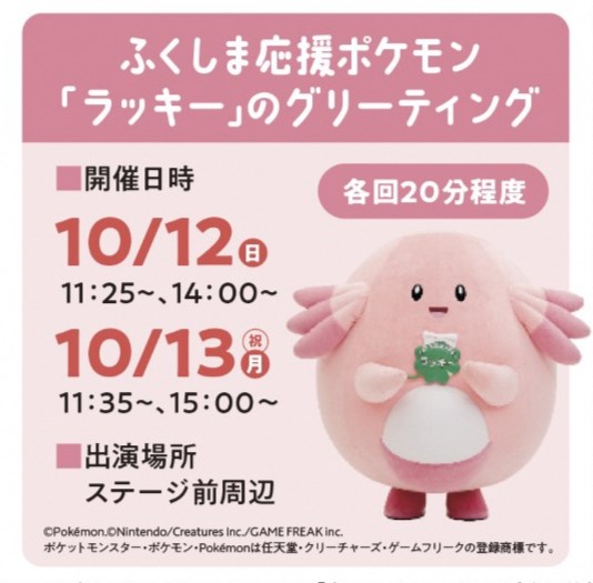 福島県ゆかりのゲストによるトークステージやライブパフォーマンス、ふくしま応援ポケモ