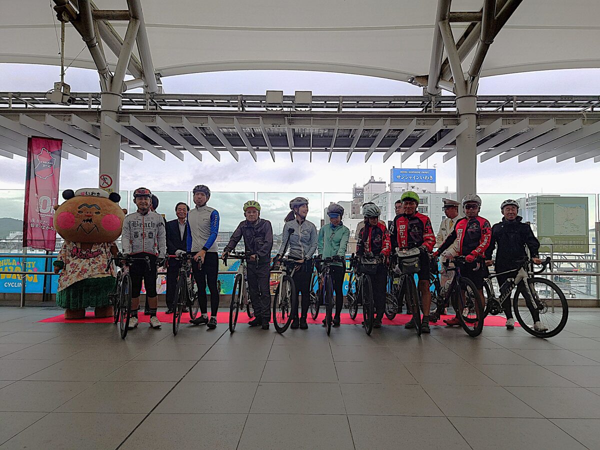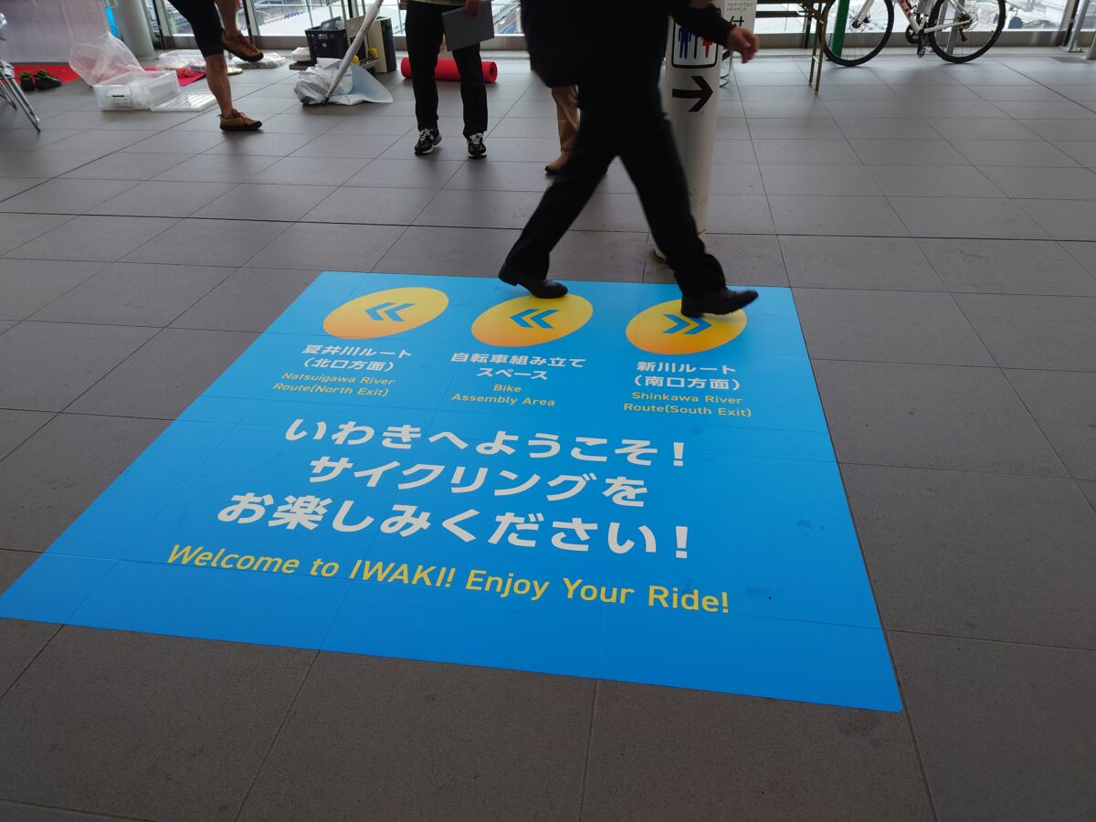 南側のゲートウェイであるJRいわき駅の南北自由通路に「自転車×観光」をイメージしたラッピングを行いました!自転車組み立てスペースをはじめ、浜サイルートを示す路面標示やいわき観光情報ナビゲーター「フラおじさん」と浜サイのコラボデザインマンホールも設置されるとともに、自転車系YouTuber「あむちゃん!」をゲストに迎えたライドイベントも開催しました✨